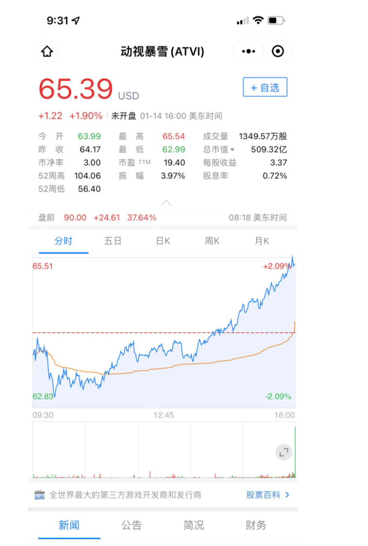 消息一出,瞬间动视暴雪盘前大涨37%