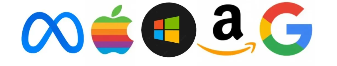 来认识一下MAMAA的成员(下图), 从左到右分别是Meta,Apple,Microsoft,Amazon,和Alphabet。