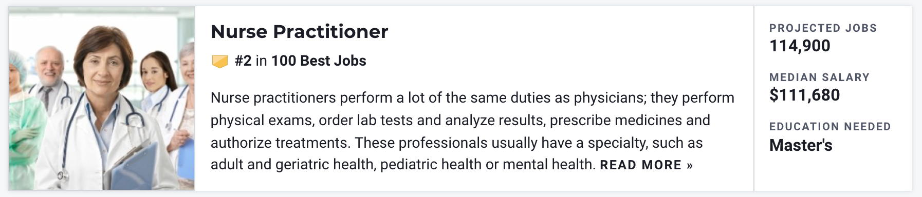 不难发现,在今年的职业排名中,医疗保健相关的职业取得了不俗的成绩。事实上,在今年的TOP100中,与医疗健保相关的岗位占据了40%,这也充分说明了医疗保健行业才是当下美国社会最受欢迎、需求量最大的职业领域。
