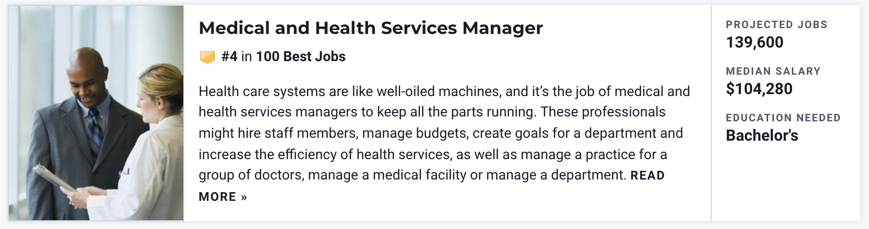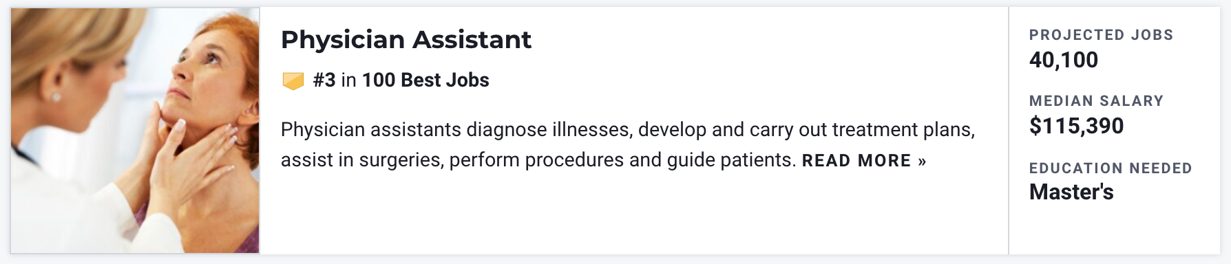 榜单排名第三的职业是医生助理,而医疗卫生服务经理排名第四,软件开发师排名第五。