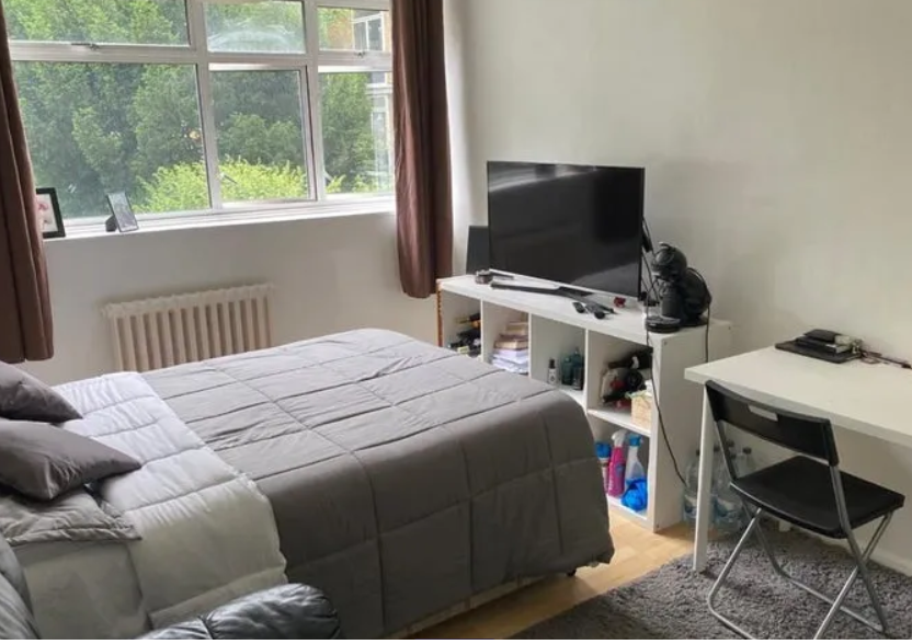 这是一个公寓楼里的单人间,有必备的家具,窗外视野开阔,环境不错。位置很好,泰晤士北岸,距离帝国理工南肯校区不远。