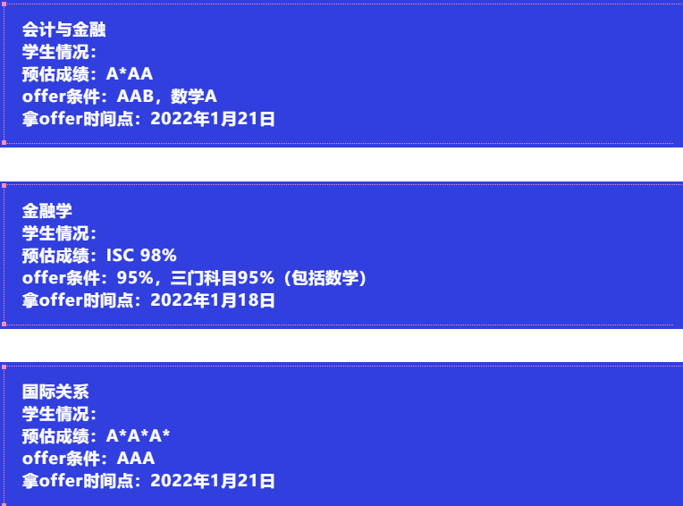 这三个专业分别是会计与金融、金融学、国际关系,再加上上周小编给大家说过的经济专业,目前LSE已经有4个专业开始发offer了,太不容易了,1月都快结束了… …
