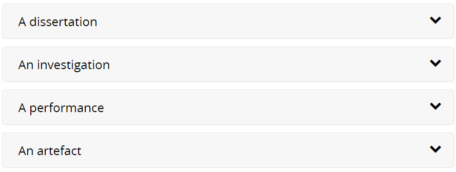 Artefact:这种类型项目,包括一个研究、设计和应用创意技能的过程,最终给出一个作品。