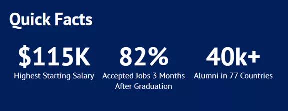 以及毕业生的薪资水平也非常的可观, 毕业后 82%的学生都能找到工作 ,毕业生在77个国家的平均年薪达到 4万美金一年 ,最高起薪为 11万美金 :