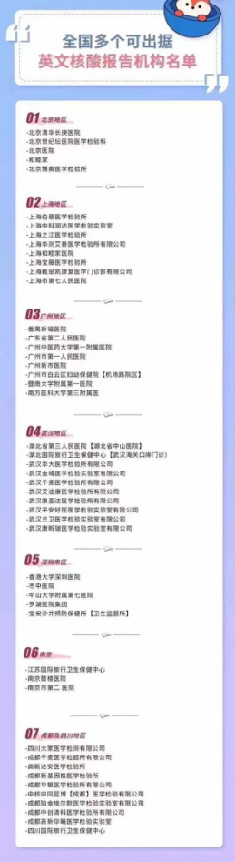 下面是部分城市可以开具中英文核酸的机构,可以供大家参考。