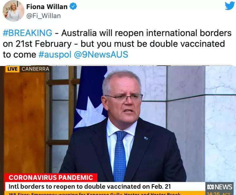 澳洲正式对已经接种两剂疫苗的