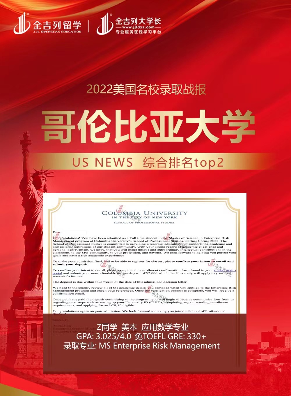 五段实习,N多项目经历,最终被排名第2的哥伦比亚大学,企业风险管理专业录取,实现了低分逆袭 !
