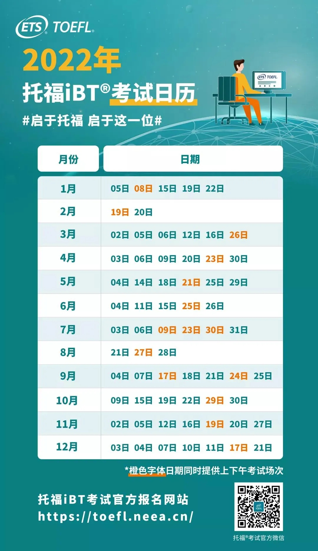 托福官方对同学们的提醒:建议大家合理提前 3-6 个月报名考试。 ETS 不限制考生全年的报名次数。同学们可以自由依据自己的申请节奏,提前规划好语言考试节奏,一次报名多场次的托福考试,顺利搭载梦想直通车!