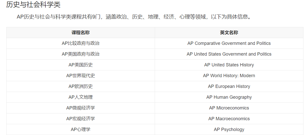 AP课程,全称是美国大学先修课程(Avance Placement)。由美国大学理事会(The College Boar)在高中阶段开设的具有大学水平的课程,主要适合计划在美国就读本科的高中生学习,在全世界范围内(包括美国本土)均可授课。