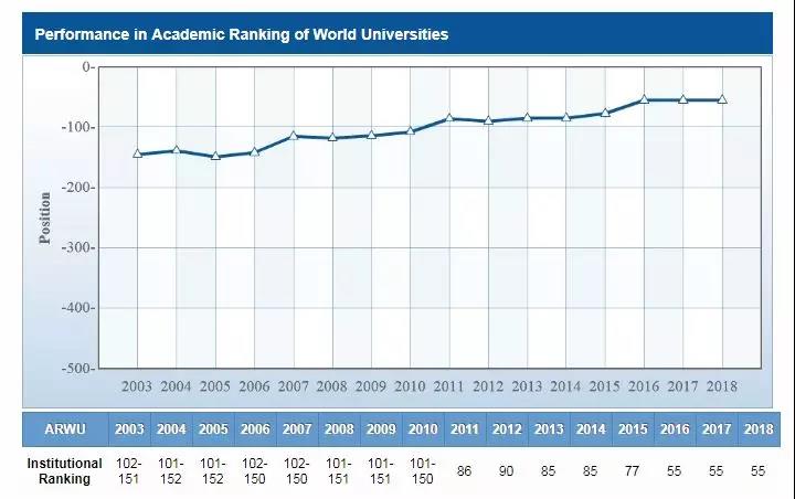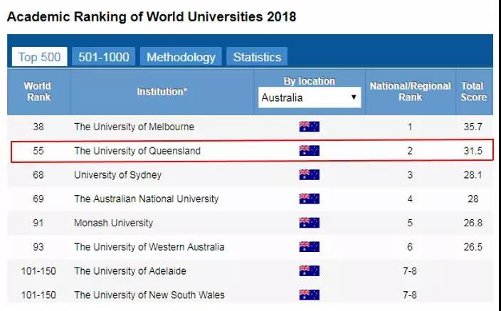 世界大学学术排名每年实际排名的大学超过1500所,发布的是处于世界前500名的大学。自发布以来,UQ的排名呈稳中上升趋势,今年已是连续第三年稳居全球第55位。