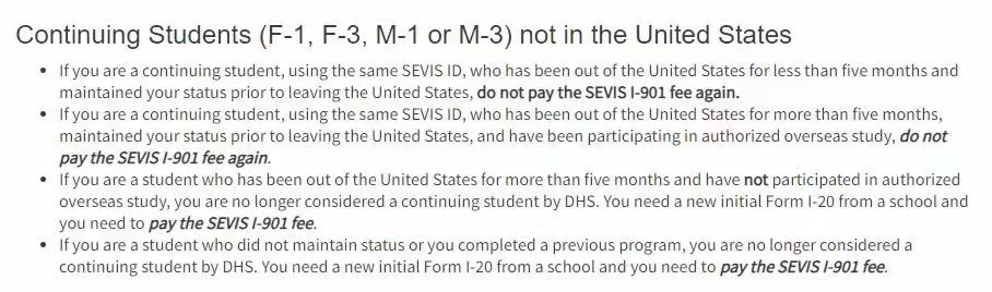 很多学生因为疫情,选择回国上网课,那么在8月1号以后,国际学生在再次入境的时候,需不需要重新缴纳SEVIS费用呢?今天小编就带大家详细了解一下!