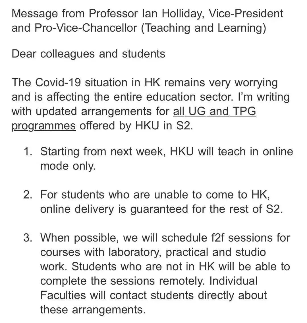 香港大学从2月7日起,本硕课程都以网课形式授课,网课模式会持续到第二学期结束。