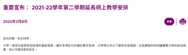 香港的高校宣布恢复面授才过了多久?都还没有正式实施,现在又宣布全面网课了!!一切都怪新冠疫情,也怪香港的防疫现状吧!!!