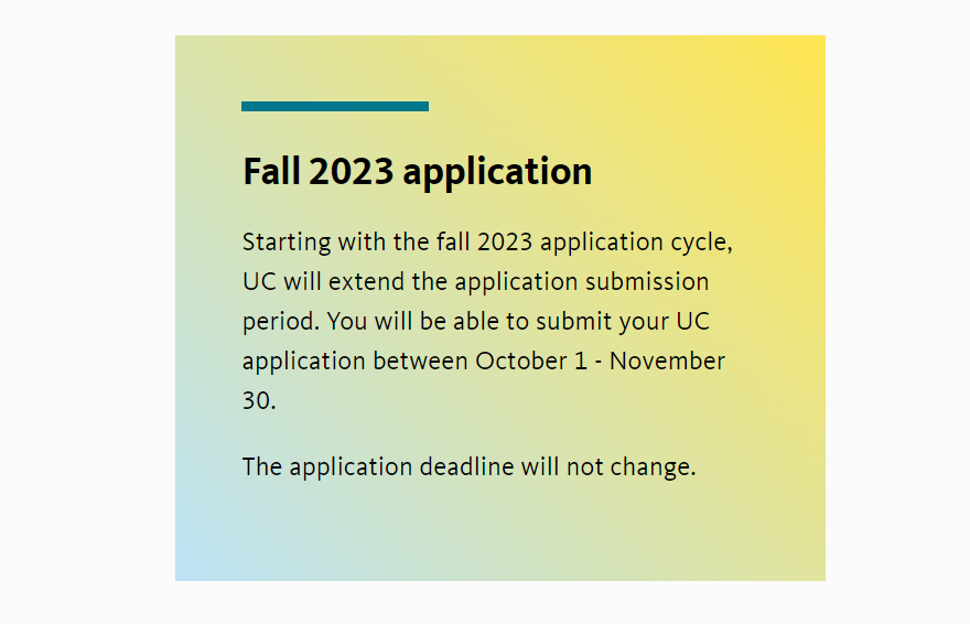 申请加州大学的同学们注意啦‼️ 最新的提交申请日期为10月1日到11月30日,比之前多了整整一个月呦 可以提早准备递交啦