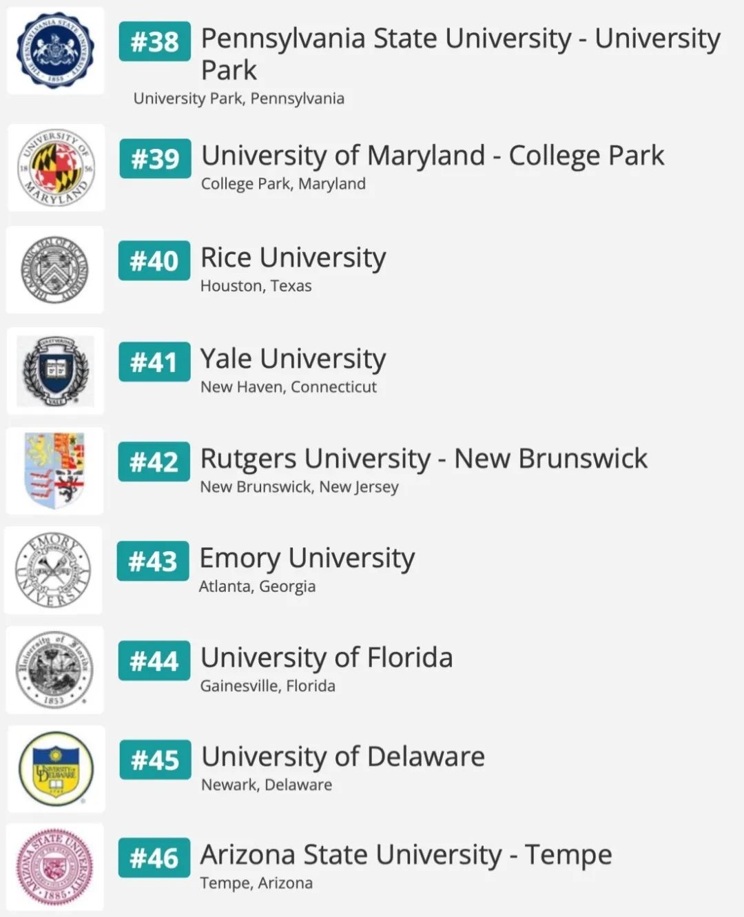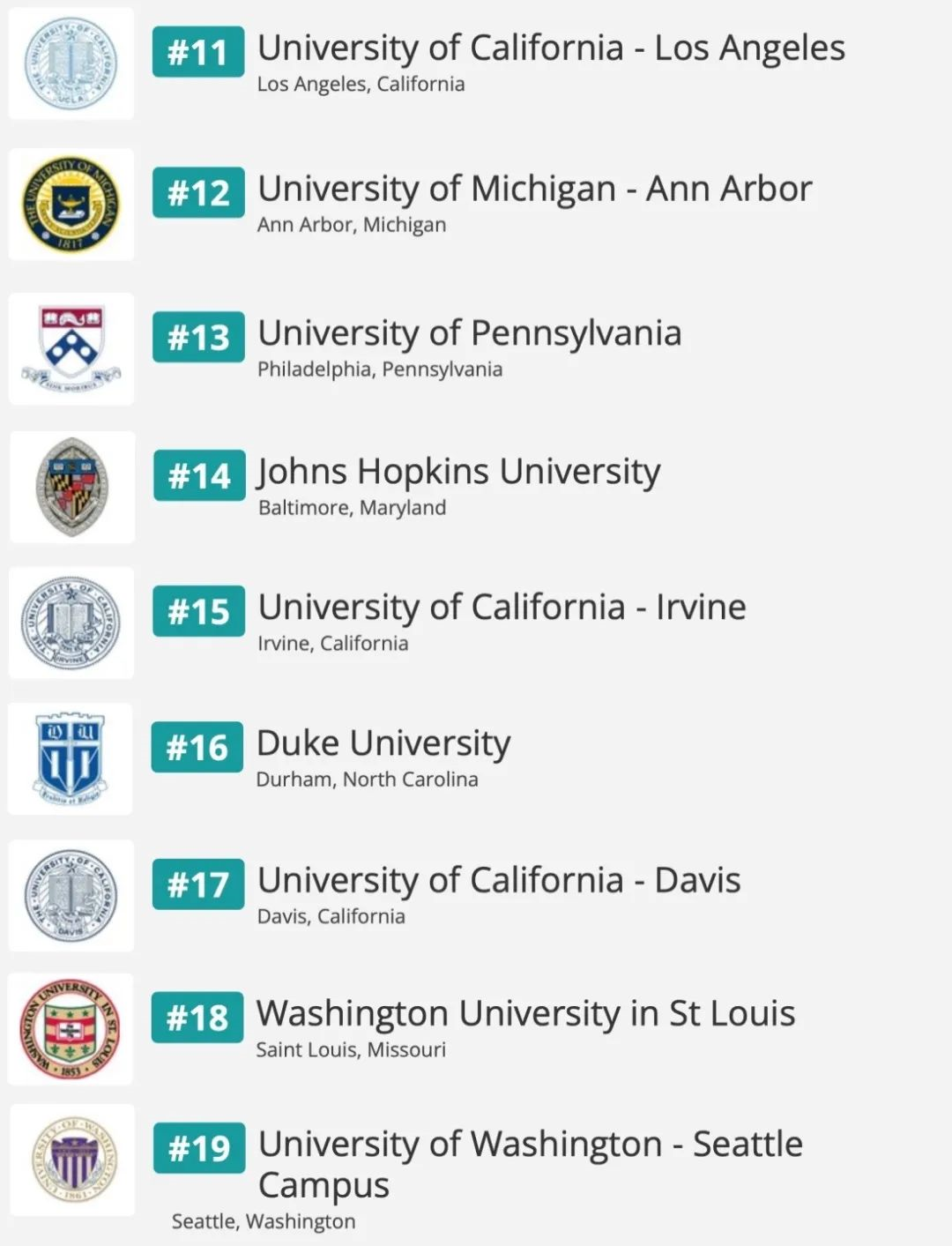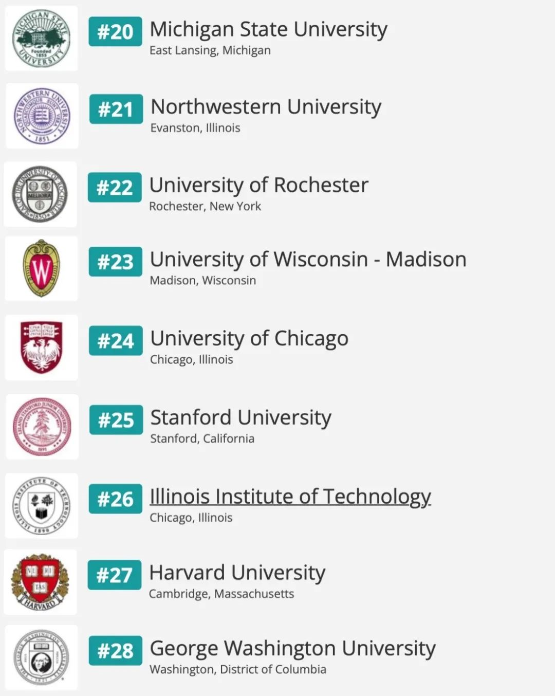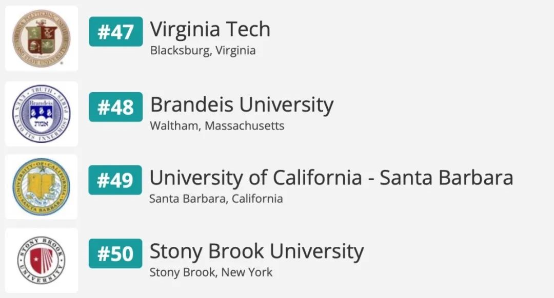 以上是最适合中国学生的美国大学TOP10,第11-50名分别是