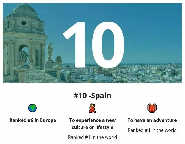 西班牙,同样是不少钟情于欧陆名校的留学生之选,尤其是在“体验新的文化或生活方式”方面深受大家喜爱。