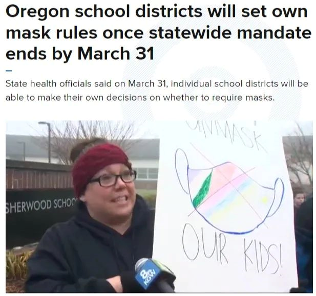 2月7日,俄勒冈州、康乃狄克州、德拉瓦州、新泽西州四州州长纷纷宣布,由于Omicron变种病毒疫情已经降低,2月底及3月便将解除州内学校全面戴口罩的强制命令。