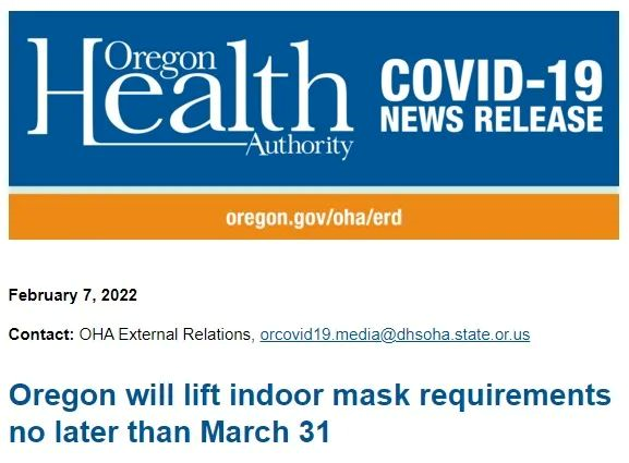 然而,州卫生官员表示,俄勒冈州目前需要保持口罩要求,因为COVID-19住院人数达到顶峰,俄勒冈州的卫生保健系统承受着治疗大量重症患者的压力。