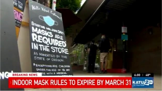 俄勒冈州最迟将于3月31日取消室内口罩令