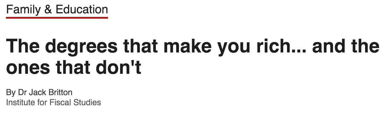 除此之外,英国财政研究所(Institute of Fiscal Stuies)联合BBC大学毕业研究所在近期也发布了一份相似的报告,大家可以对比数据进行查看。