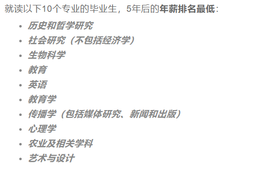 就读以下10个专业的毕业生,5年后的年薪排名最低: