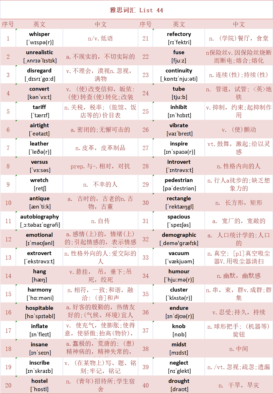 雅思词汇库,接下来会持续不断的为大家更新雅思口语必备词汇。 还在备考的小伙伴们,快来领取吧 加油加油加油~~~~