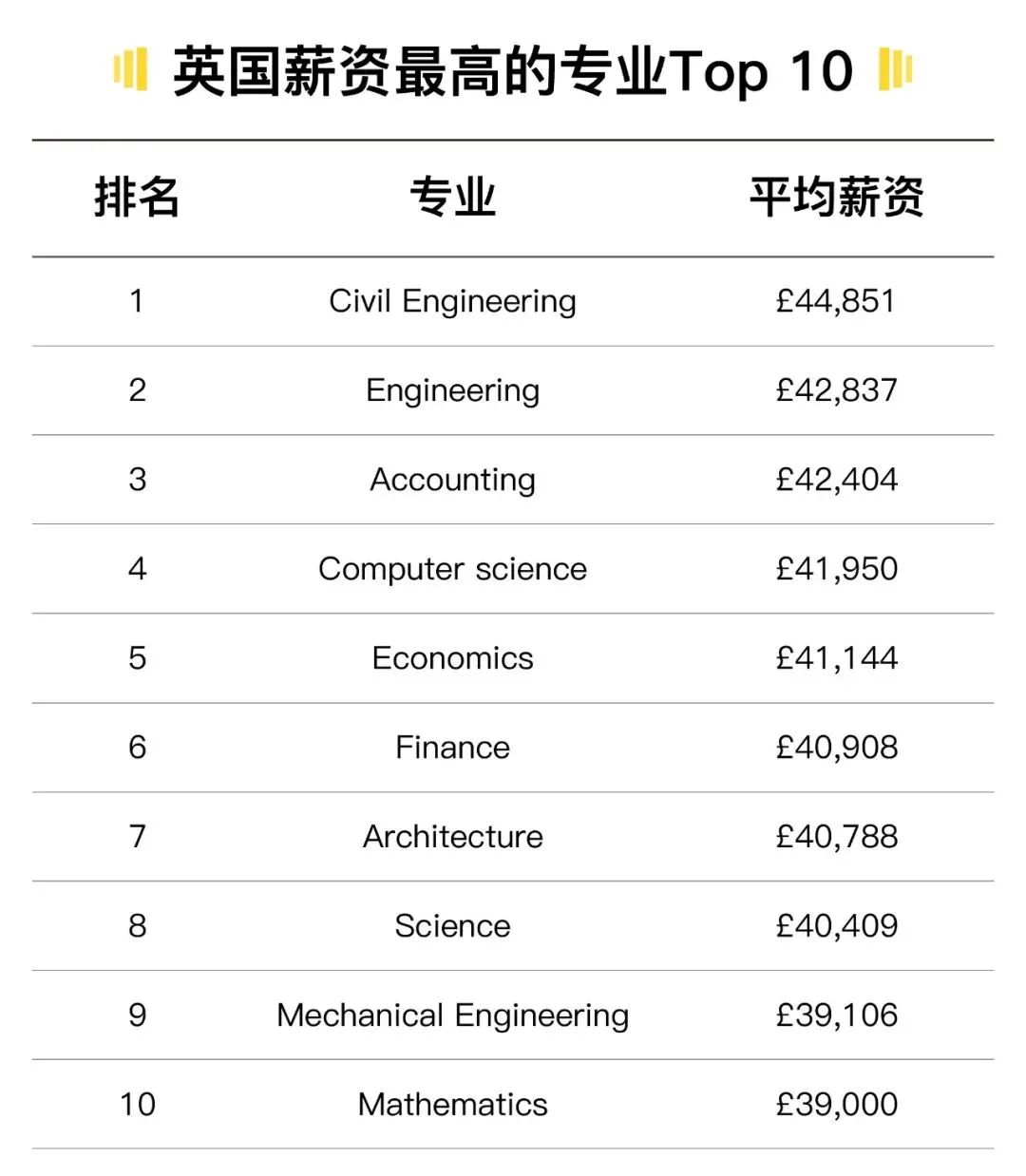 Computer Futures也曾发布了一份英国平均毕业薪资最高的专业榜单,STEM领域的专业可是赢了个大满贯。