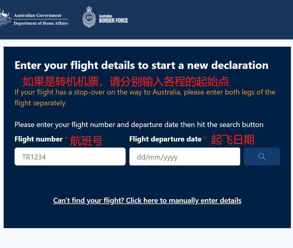 - 声明已了解入境澳大利亚和您抵达的州或地区的检疫和检测要求,以及不遵守规定的处罚。