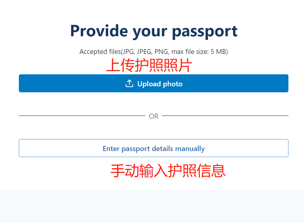 点击confirm后,进入下一页,上传护照签字页图片,可以自动识别