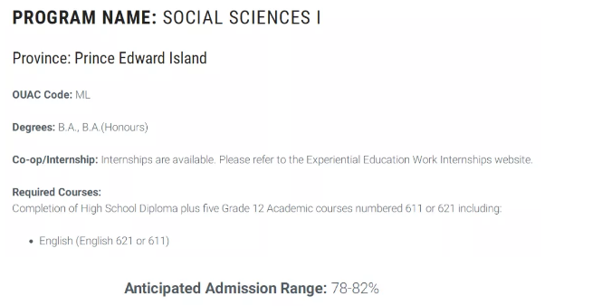 爱德华王子岛学制我们拿社会科学来举例。需要提供5门12年级成绩,其中必须包括英语,某些专业,如经济学,心理学等建议学生提供微积分成绩。校方建议的最低录取GPA分数约为78。最终录取时也需要提供高中毕业证书。相比较而言,社科类方向是麦马录取相对比较容易的专业了。