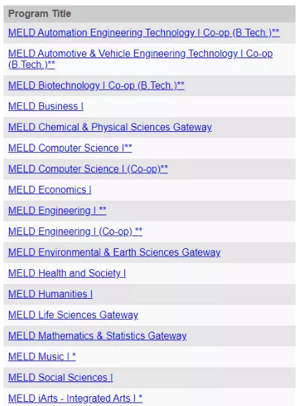 MELD项目是一个为期八个月的语言强化桥梁课程,教学采用最先进的教学方法和理念,让学生真正从听说读写四个方面提高学术英语水平。MELD项目共设有10门课程,分为8门学术英语课程和2门大学学分课程。课程共两个学期,每年九月份入学,每学期四个月(九月至十二月是一个学期,一月至四月是一个学期)。学生每周需要完成二十个小时的课程学习。完成MELD项目不仅可以帮助学生更快地融入加拿大文化,还可以提前修大学学分,学生顺利完成该语言项目,即可直接入读本校大学专业课程。