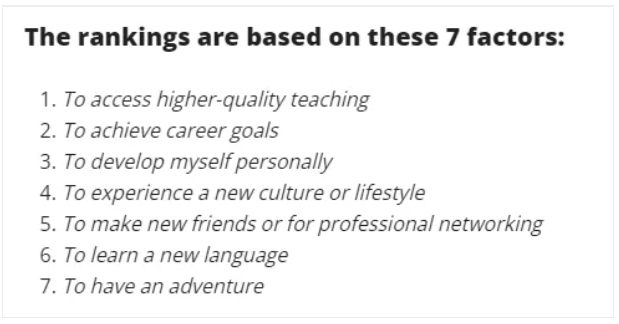 由于这份排名的依据是学生们在选择目标留学国家时最看重的因素。