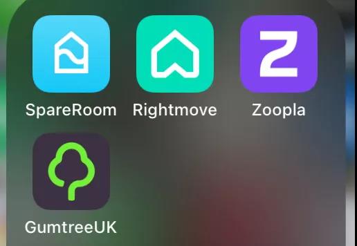Spareroom, Rightmove, GumtreeUK, Zoopla 等应用或网站都是不错的选择。
