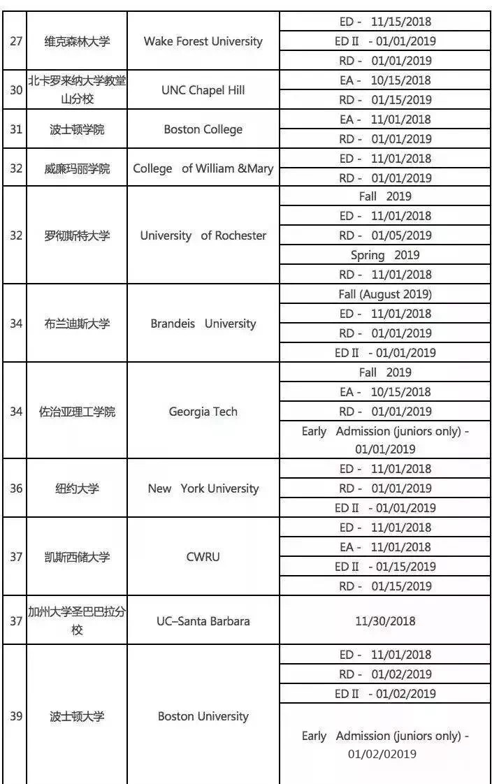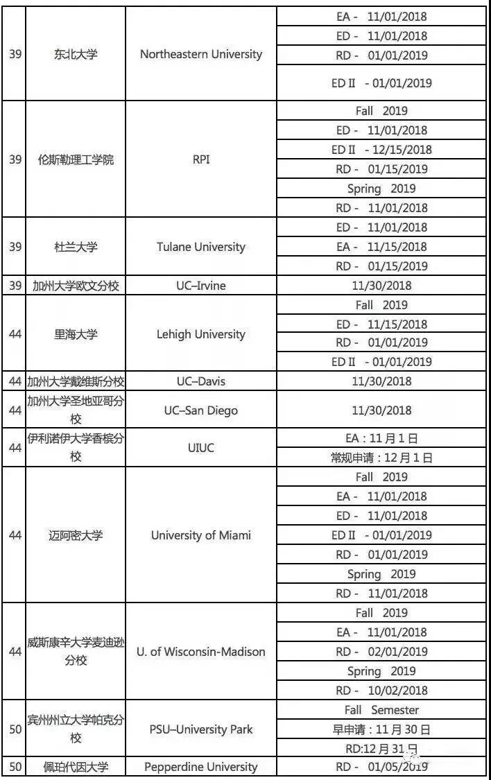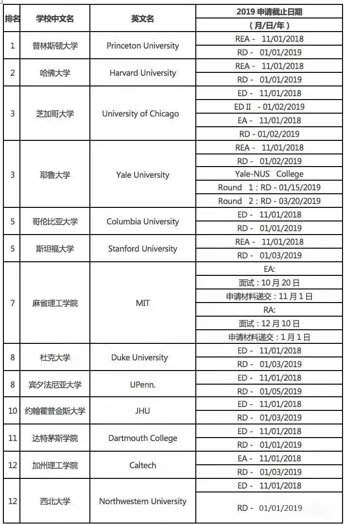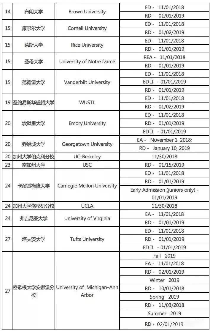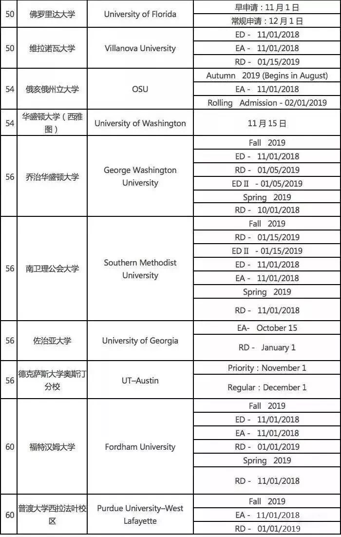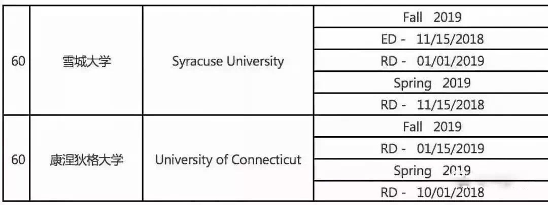 绝对值得收藏的2019年秋季入学,top60每一个学校的网申截止时间。