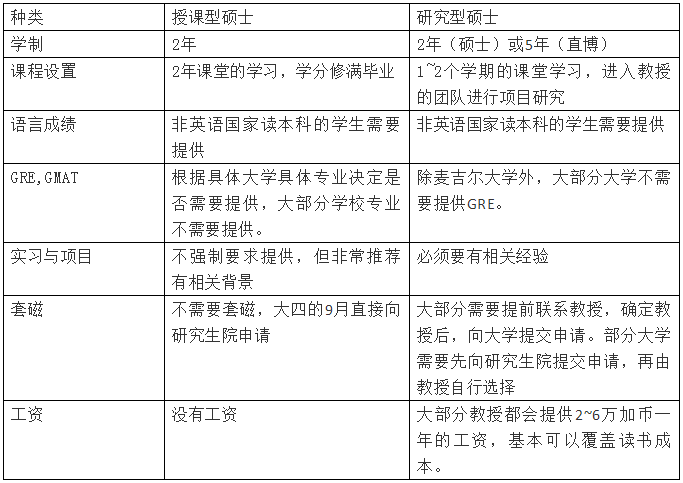 加拿大硕士的区别 加拿大硕士分为研究型硕士和授课型硕士,一般申请的比较多的是授课型硕士,研究型硕士一般是为博士做准备的。