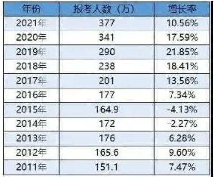 昨天,万众瞩目的考研出分了,我们来看一组数据,2021年中国考研报考人数是377万,2022年考研报考人数为457万,比去年多出来80万,增幅为21%
