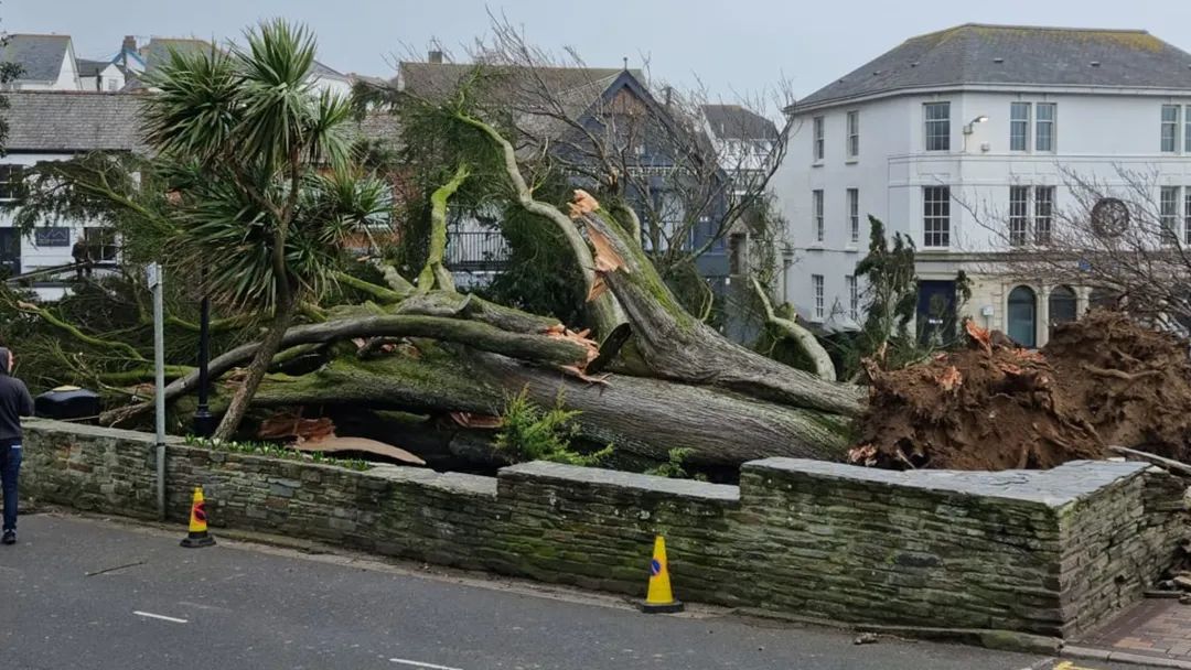 在英国很多地方,风暴尤尼斯的破坏力直接把树木连根拔起