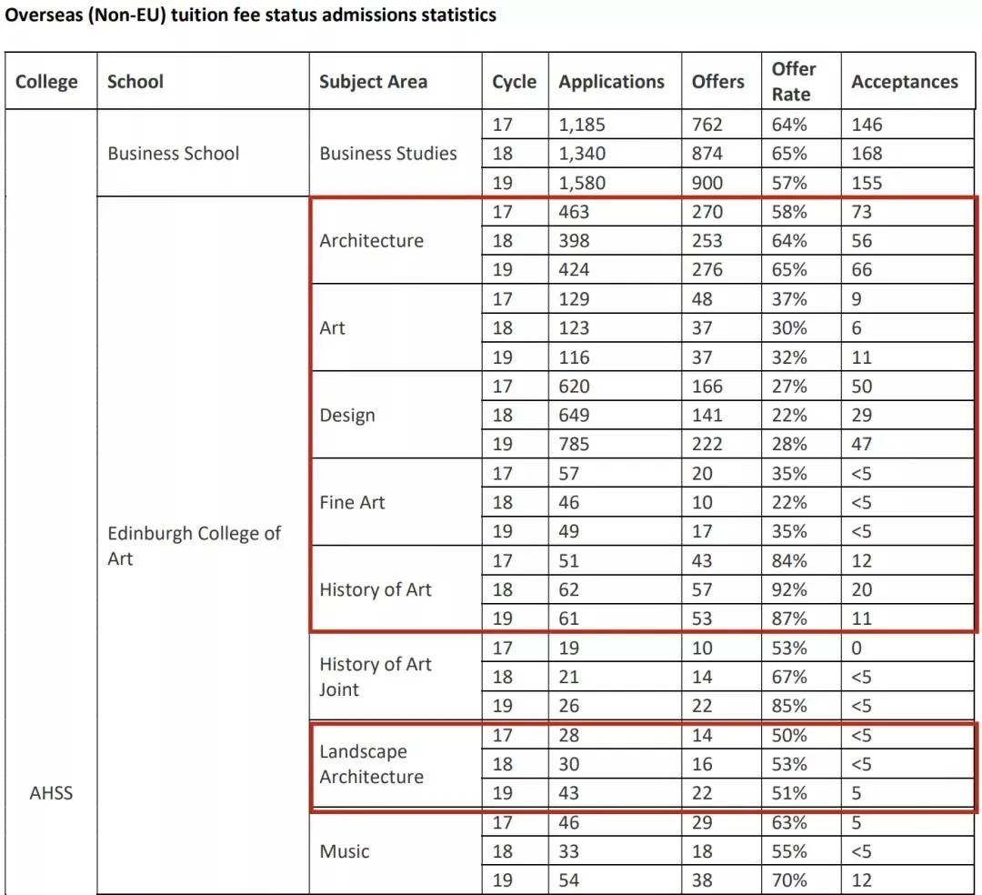 而申请人数最多的设计专业,offer发放率最低,仅为20%左右,录取人数更少,2019年只有47人。