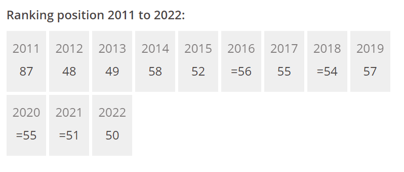 学校在THE2011-2022年排行情况
