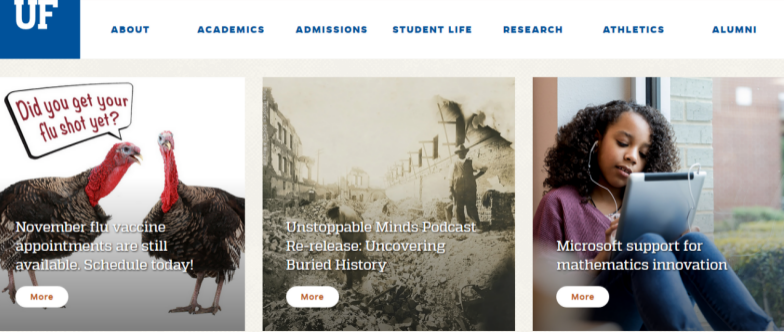佛罗里达大学(University of Floria,简称UF)是一所位于美国佛罗里达州盖恩斯维尔(Gainesville)的公立研究型大学,成立于1853年,属于美国30所公立常春藤之一。天文学、化学为其传统优势专业。学校仅有的两名诺贝尔奖校友都与化学相关。2005年诺贝尔化学奖的获得者Robert Grubbs,其研究领域便是“烯烃复分解反应”;另一名校友Marshall Nirenberg则是于1968年获得诺贝尔生理医学奖,则是基于其在遗传学领域的巨大贡献。天文学多次获得与NASA合作的项目,并计划与西班牙相关组织合作,在加那利群岛建造世界上最大的望远镜,总经费九千三百万美元。
