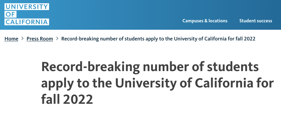 校方表示:申请人数创历史新高也说明了加州大学仍然是本科申请的首选。