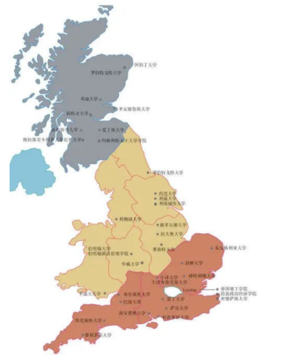说到英国大学,首先不得不简述下英国的地理情况。英国本土分为英格兰、威尔士、苏格兰和北爱尔兰四部分,而英格兰是最大的组成部分,英国的高校类型一应俱全,有综合性也有专业性的,大都分布在英格兰。
