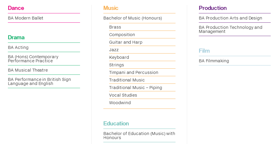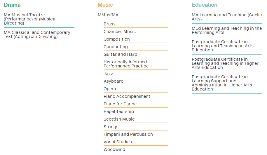 苏格兰皇家音乐学院,位于苏格兰格拉斯哥市,始建于 1845 年,历史悠久,为世界上最具跨学科和协作性的机构之一并且一直是世界排名前十的表演艺术院校。教学人员将教学与专业工作结合在一起,音乐教师在国家交响乐团中担任要职,戏剧导师指导专业公司,以及在世界各地从事新项目的电影讲师。教学人员赢得过年度音乐教师奖、留声机奖、英国广播公司音乐杂志奖、年度爵士教育家奖和英国作曲家奖。