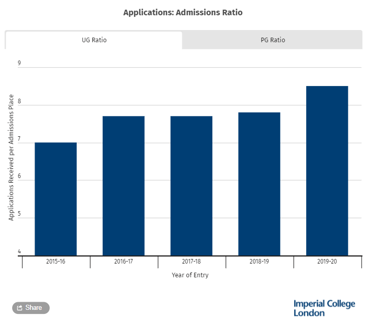 根据最新数据,2020-21学年帝国理工本科平均8.2录1。