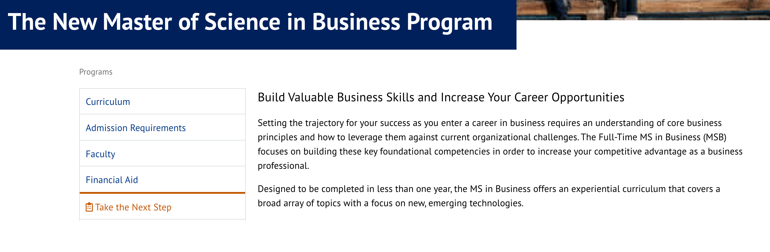 该项目的学生还能和MBA学生一起上选修课,参与到商界名企的赞助项目中,将课程知识运用于实践。同时,该项目正在申请STEM的过程中,一旦申请成功,录取的学生都将获得3年的有效OPT,有利于未来就业。