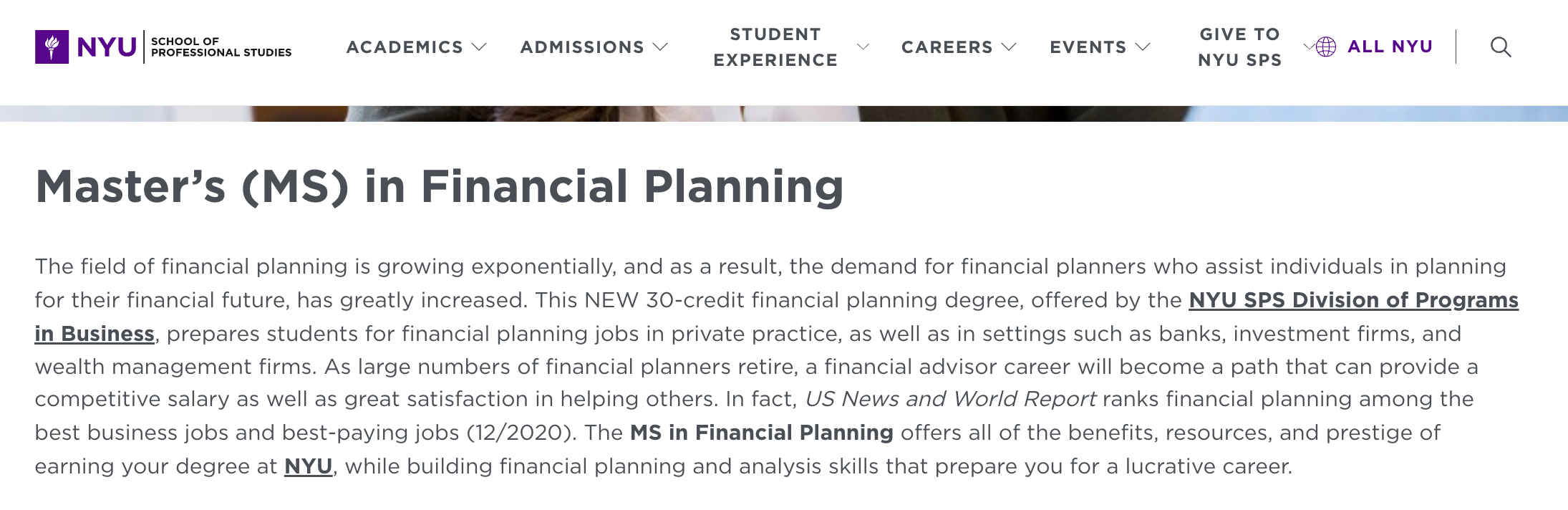 该项目旨在为学生提供财务分析方面的学习专业知识,由课程传授给财务规划职业所需的技能,也提供了关注该领域和各个不同领域的机会。
