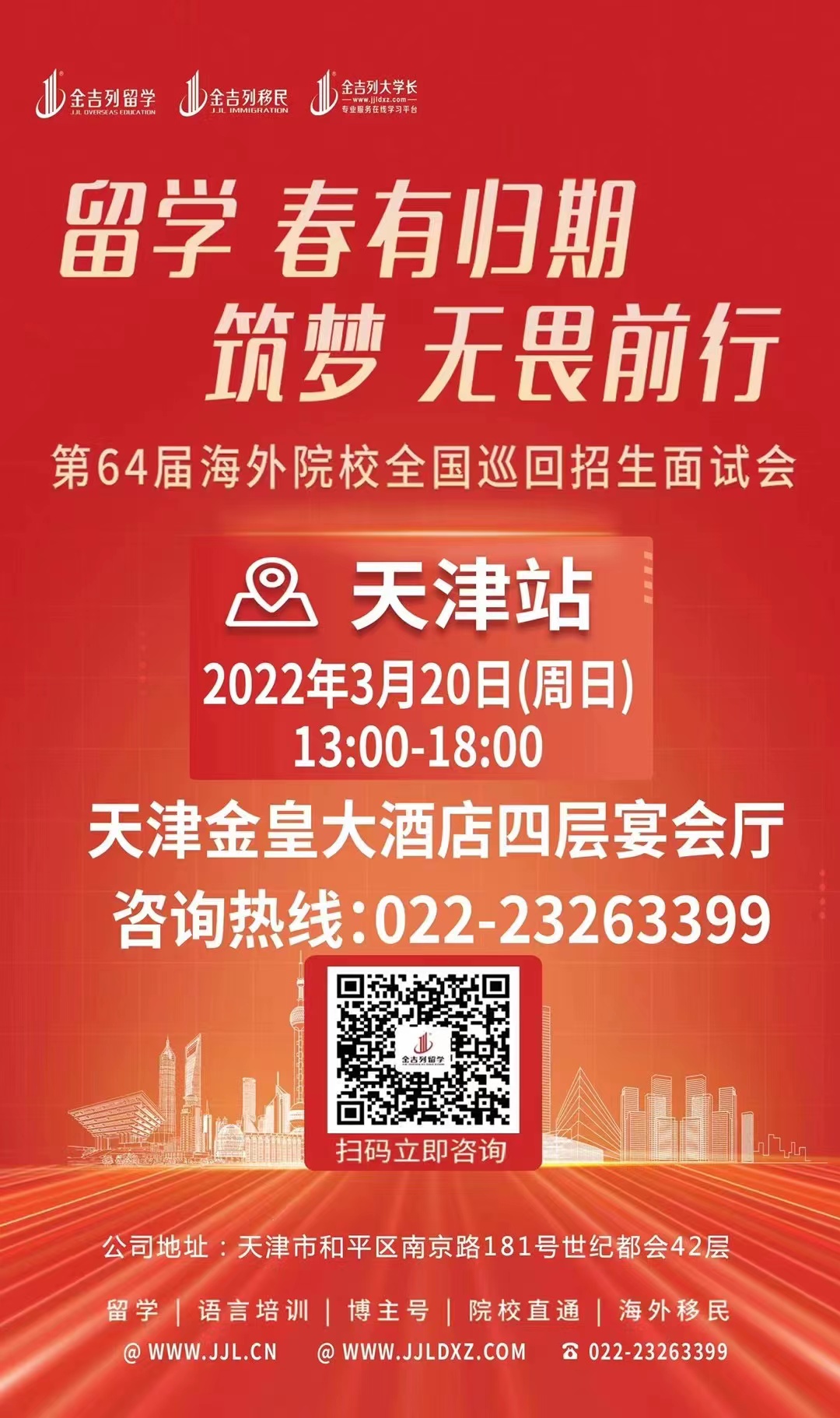 如想了解更多信息,可于3月20日来天津金皇大厦4层宴会厅参与我们第64届海外巡回教育展,我们有幸邀请到北美学霸速成计划的老师现场为学生和家长答疑解惑。具体信息可以参考下图扫二维码进行了解,或者直接联系到金吉列资深留学规划师宋友文老师。