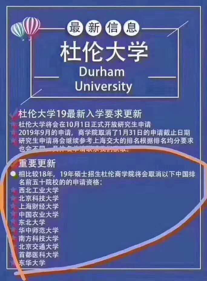 这些大学的学生,杜伦大学商学院不接受申请了。。。。