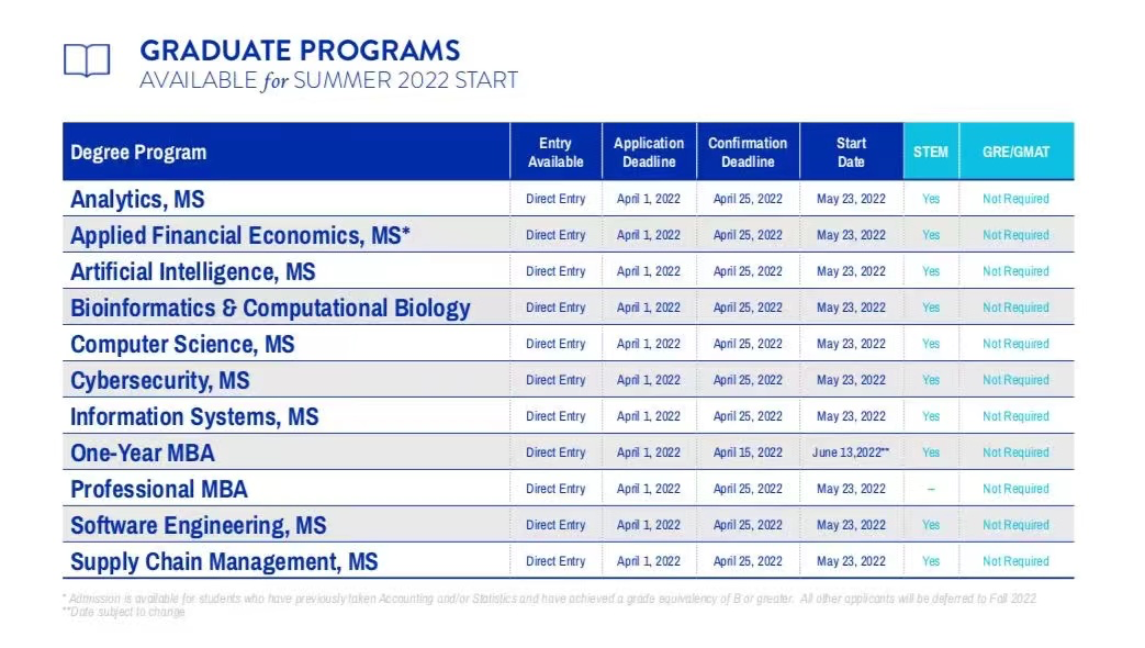 11个硕士直录课程开设夏季入学,无GRE/GMAT要求,2022年春季延期的学生也可申请。