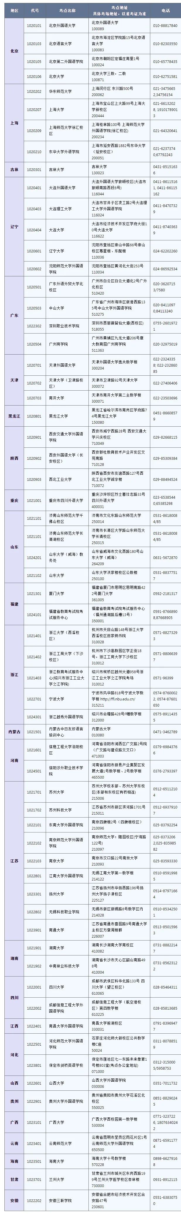 考点地址及联系方式